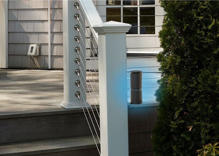 Each kit comes with standard mounts to install on decks, and ground stakes for soil or mulch. To install on a patio or stone walkway without drilling, add a hardscape base, which secures the repeller with weight.