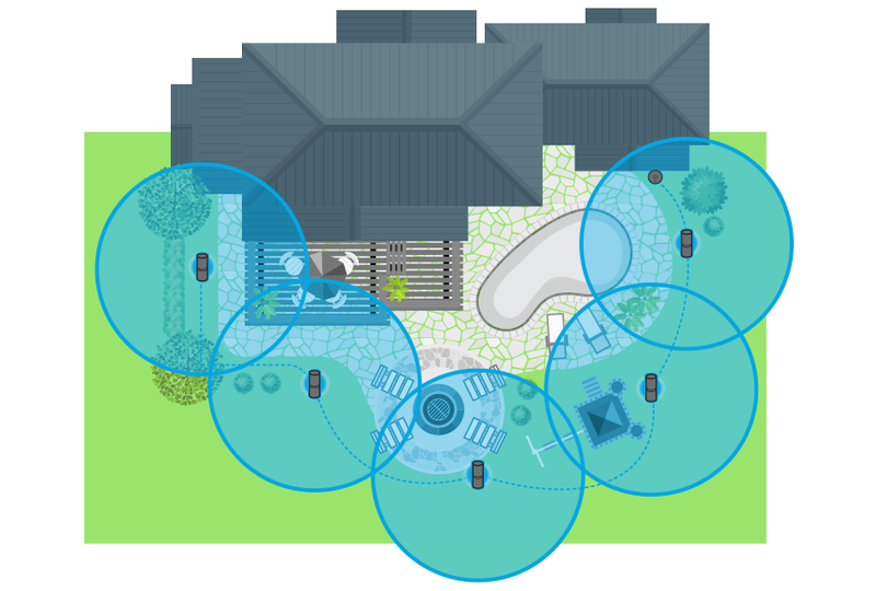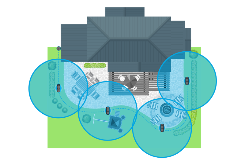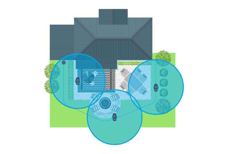 Sketch the perimeter for where you need protection. Keep in mind the smart hub plugs into an outdoor electrical outlet and repellers are connected with cables. We recommend placing repellers no more than 20 feet apart.